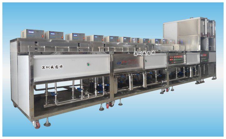 鋁材手機外殼陽極氧化處理光學超聲波清洗機威固特鋁材手機外殼陽極氧化處理光學超聲波清洗機主要有前清洗、工序間清洗、鍍膜前清洗、成品件的清洗等多種規格的機型組成。