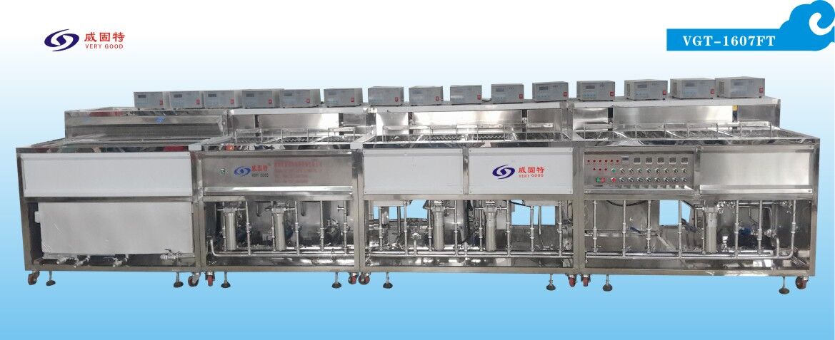 VGT-1309FT為紅外線濾光片超聲波清洗機,設備共有13個功能槽,配置有浸泡系統、循環過濾系統、自動恒溫系統拋動系統、超聲波清洗系統、慢拉脫水系統、熱風烘干系統、密閉氣缸門系統、抽風裝置等。設備采用環保型水溶劑洗滌、純水漂洗,為環保型清洗機;