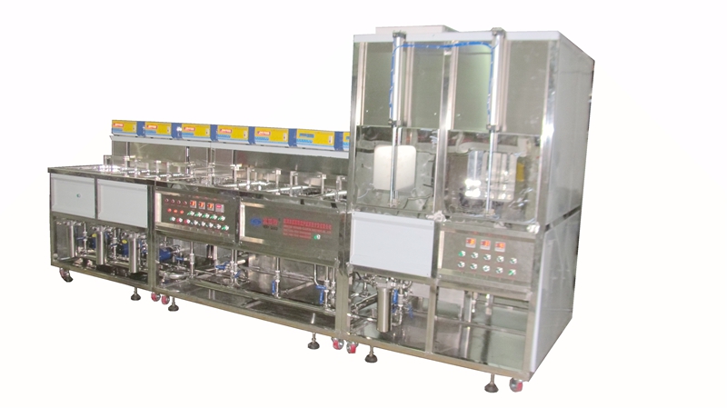VGT-9140S九槽手動式超聲波清洗機(jī)該清洗機(jī)是 9 個由不銹鋼材質(zhì)制作的洗劑超聲槽、強(qiáng)堿超聲槽、市水/回用純水超聲槽、純水超聲槽等組成的一條連續(xù)工作的由清洗的裝置。